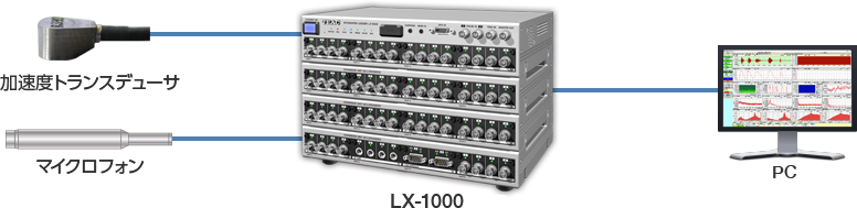 音/振動/ひずみ/温度/回転信号/CAN等の同時計測も可能 - 4ch~64ch(4台動機可能:最大256ch)