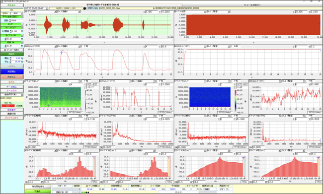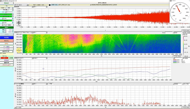 - 騒音、振動をリアルタイムにFFT(低域、高域)、1/Nオクターブ分析、次数比などの解析と時間データ同時保存の実現